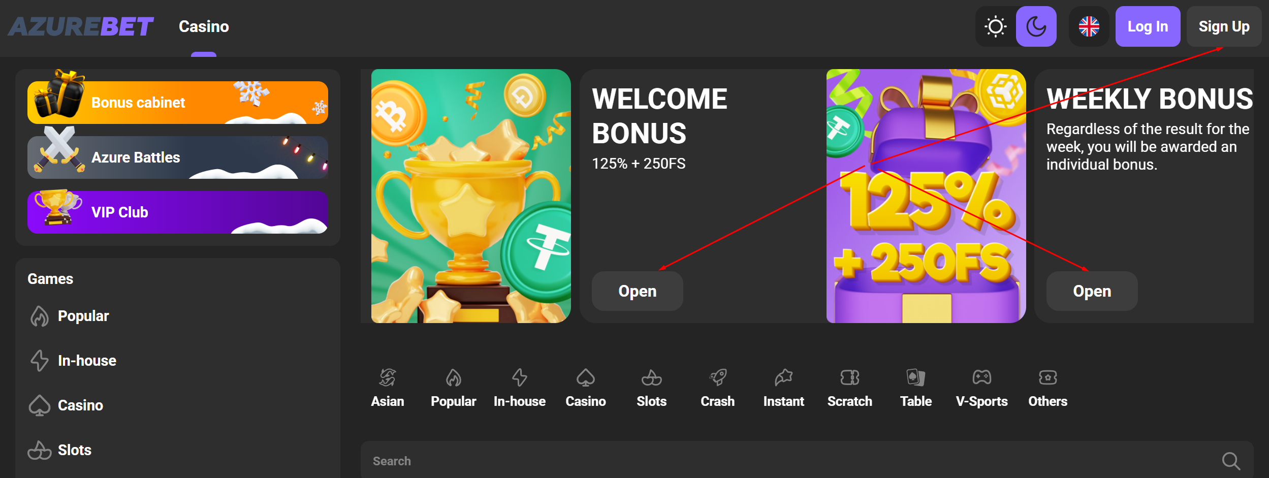 Offers unique In-house games and Crash titles like Aviator and Diver. -