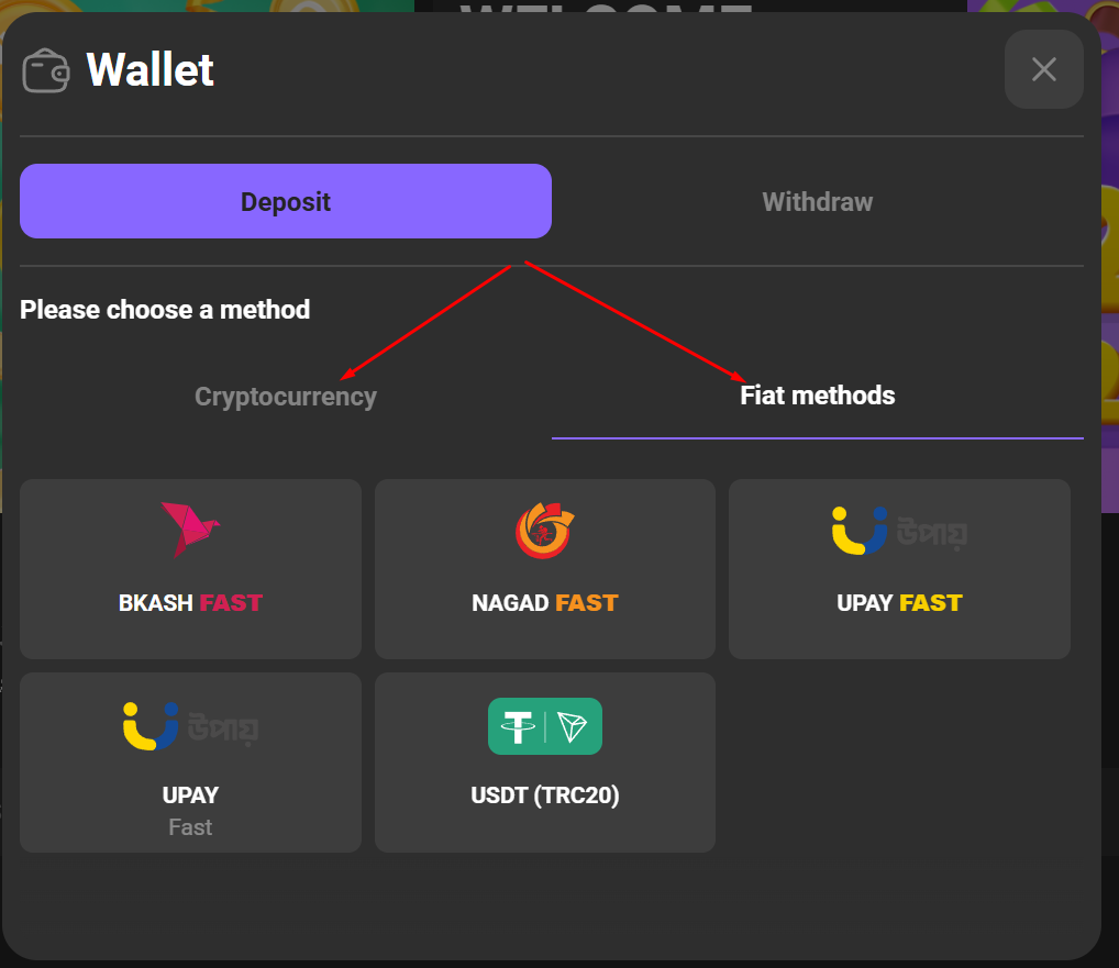 Funding an account from Bangladesh is highly efficient due to the inclusion of Bkash, Nagad, and Upay Fast methods. While the platform does not charge internal deposit fees, players must remain cautious of the mandatory 3x deposit turnover rule; failing to wager your full deposit three times will trigger a 20% penalty fee during the withdrawal process.
