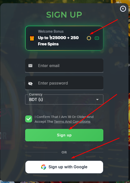 | Casino Welcome | 25,000 BDT + 250 FS | x25 | ~850 BDT |
