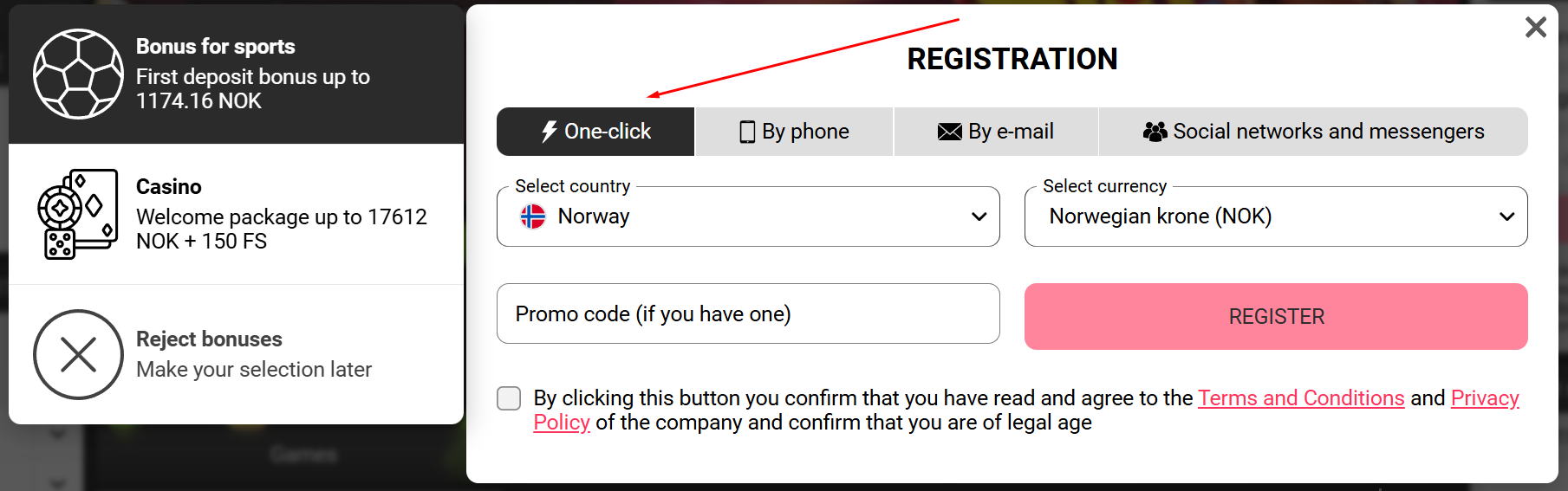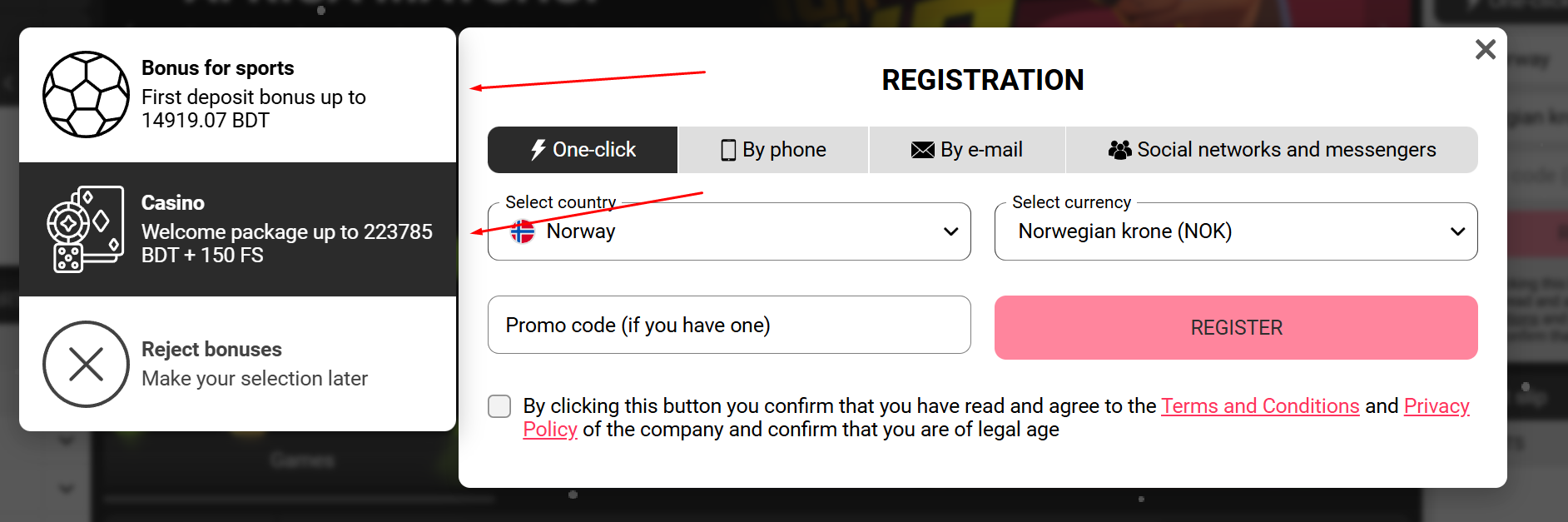 Using a code unlocks the 100% first deposit bonus. I analyzed the terms: you must wager the bonus 5x in accumulators with at least 3 events at odds of 1.40 or higher. Note that all bonuses are disabled for cryptocurrency.