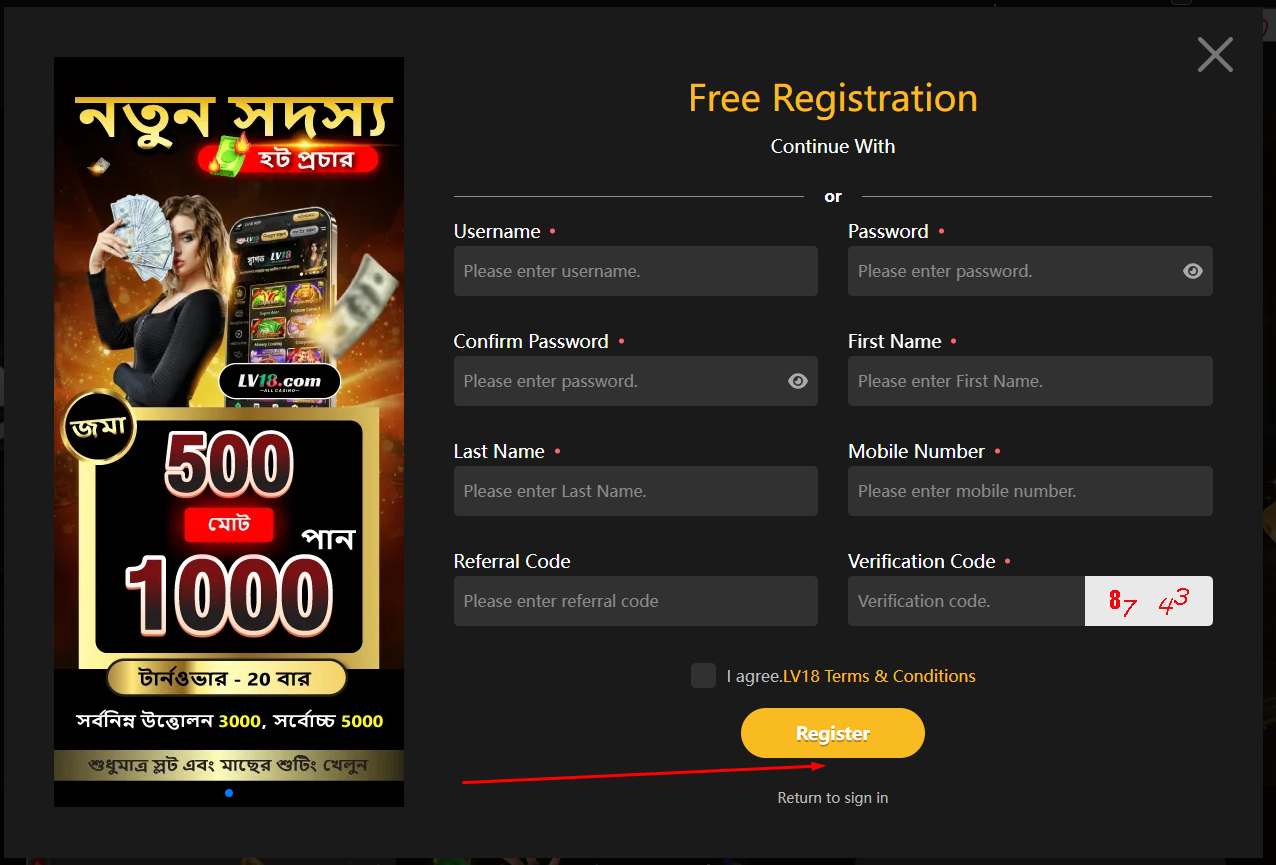 In my experience, the registration requires a unique username and a Bangladeshi mobile number. I noticed the login system requires a manual captcha entry for every session to maintain security protocols on their Philippine-licensed platform.