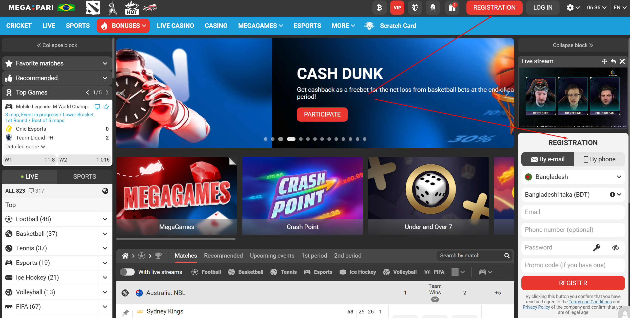 Megapari offers an extensive sportsbook with over 45 disciplines, ranging from major global competitions like the Premier League and NBA to specialized niche markets such as Kabaddi and Trotting.