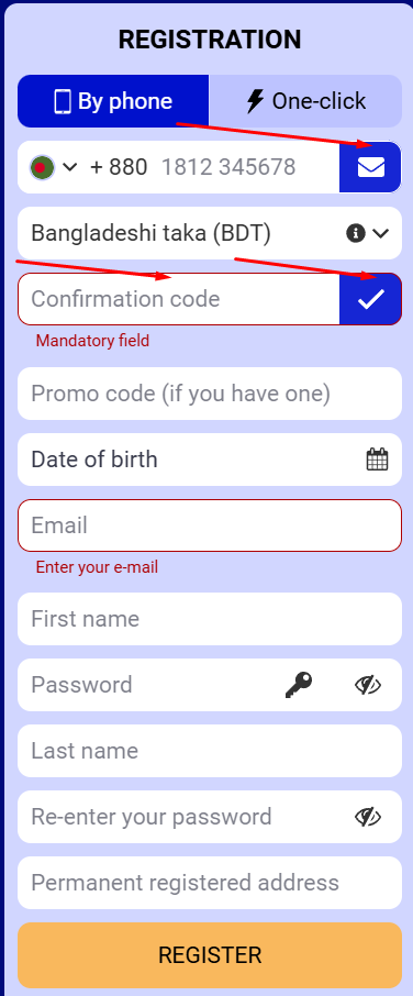 Check your spam folder or wait for the timer to resend the code. If the issue persists, use the One-Click method to create an account instantly and link your phone later. Join the official website and start playing now!